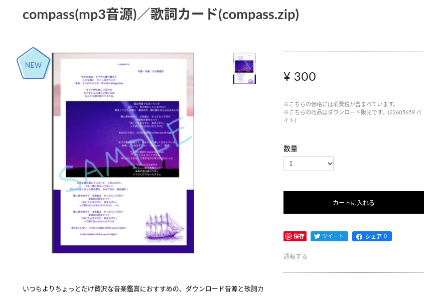オンライン限定mp3音源と歌詞カードのセットです (税込300円)